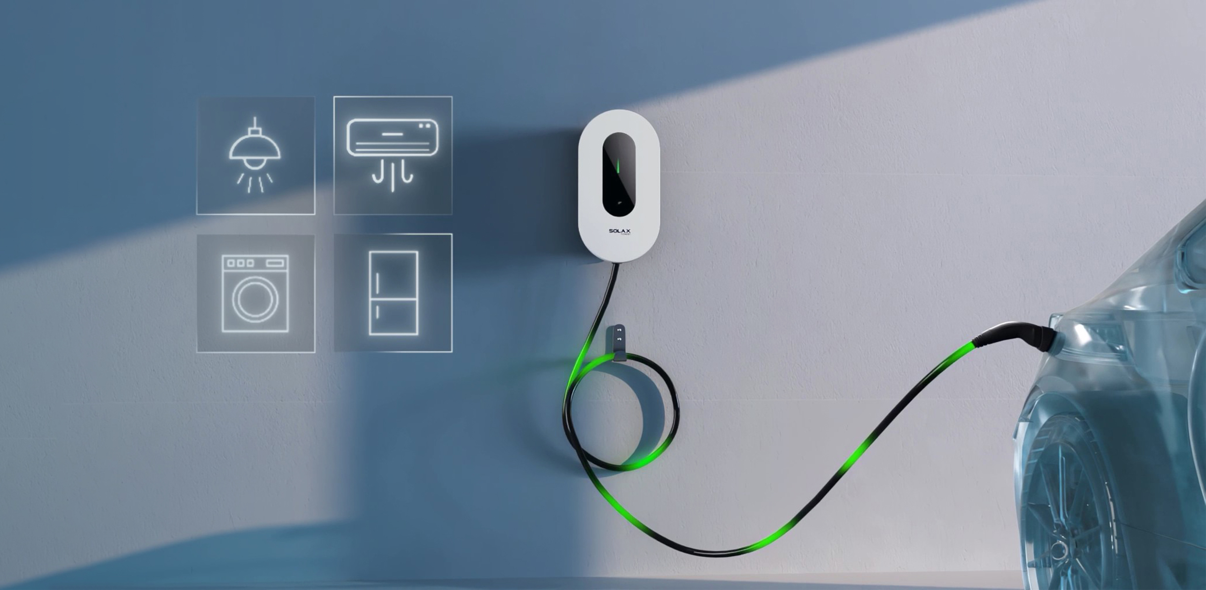 حول تجربة الشحن المنزلية بشاحن SolaX الذكي للسيارات الكهربائية. استمتع بشحن سريع وفعال، مع تحكم كامل عبر منصة SolaXCloud. حدد جدول الشحن خلال ساعات غير الذروة، اضبط تيار الشحن، وراقب حالة شحن سيارتك عن بعد — كل ذلك من خلال هاتفك الذكي.