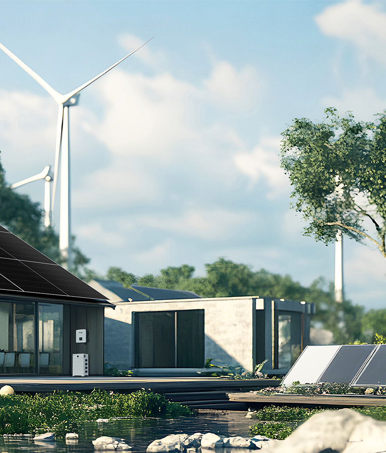 استغل القوة الكاملة للطاقة المتجددة مع حلول الطاقة الشمسية + تخزين الطاقة + طاقة الرياح من سولاكس